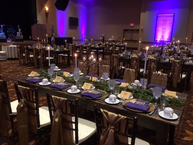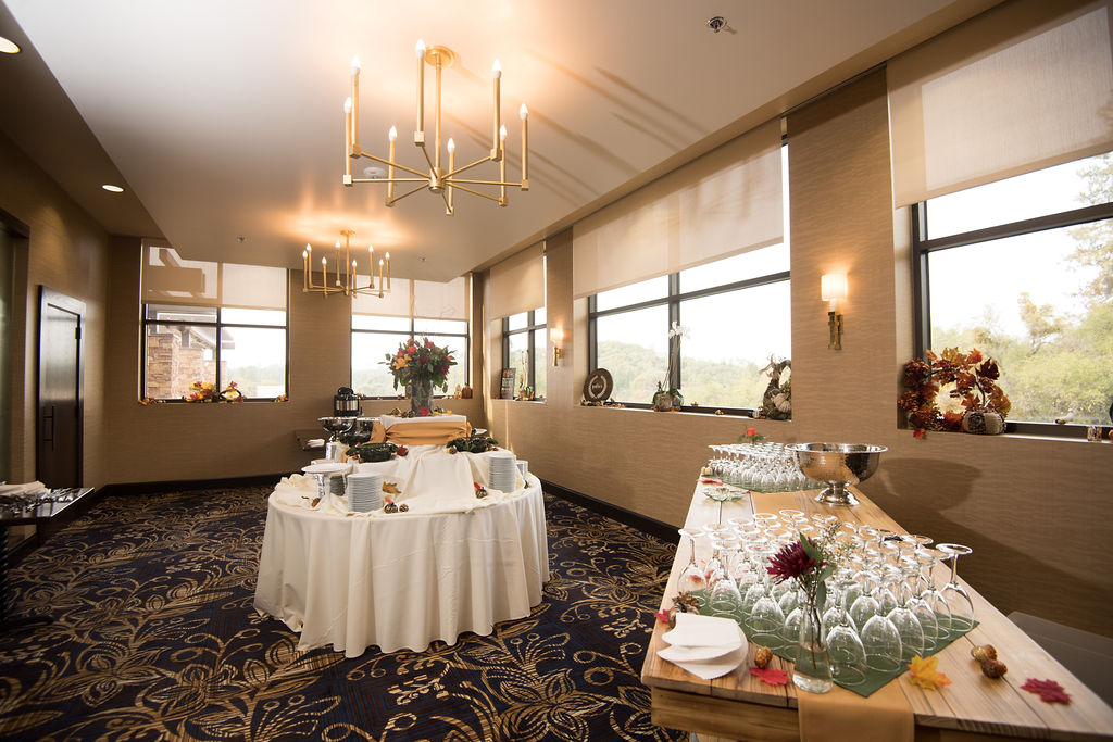 The Grand Oak Ballroom is the largest space for hosting your private party at Jackson Rancheria. With seating up to 350 guests, this space can also be split into 4 smaller spaces accommodating closer to 120 guests in each quadrant. With an autumnal feel, neutral taupe walls, gold lit chandeliers with arrow accents, this space is all yours to create any theme. The ballroom includes a large stage, state-of-the-art audio visual, portable bars, and an in-house food and beverage team that isn’t afraid to create something special for your event! What makes Jackson Rancheria extra special is their offerings in variety and in-house upgrades. From 8ft and 9ft rectangle tables to farm tables and 6ft round tables, each space can vary by look and feel. Multiple linen options are included and specialty upgrades are available, such as charger rentals, chair covers, market lights, and chivaris that can be included for half the cost of most rental companies. Beautiful complimentary centerpieces are also available with a fantastic perk of a talented in-house florist to create magical floral design. A lot of bang for your buck here!