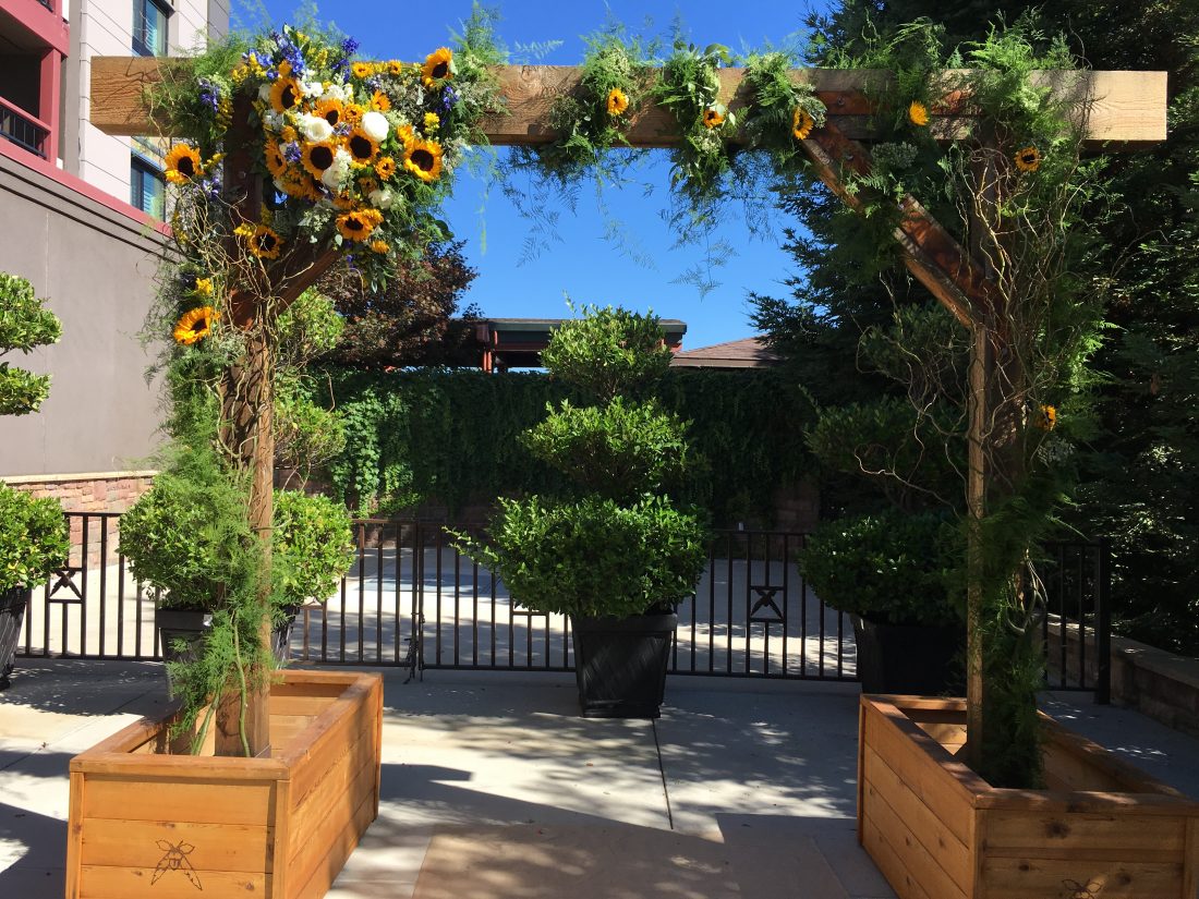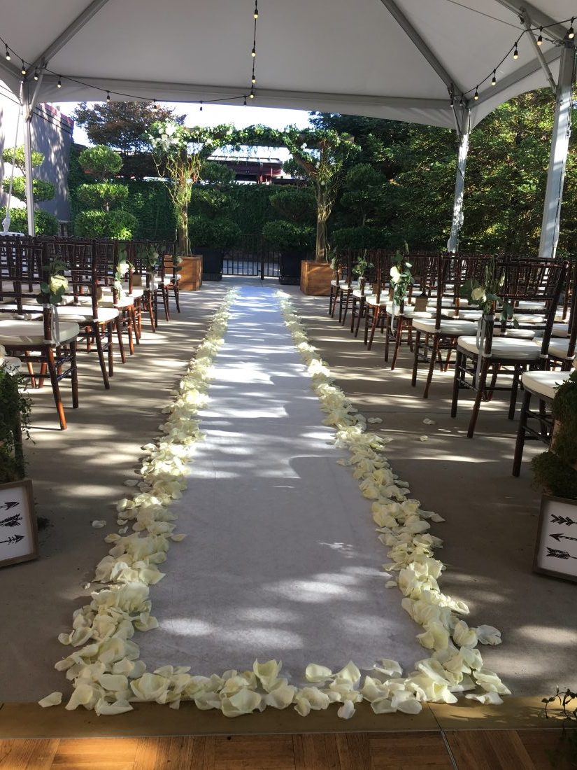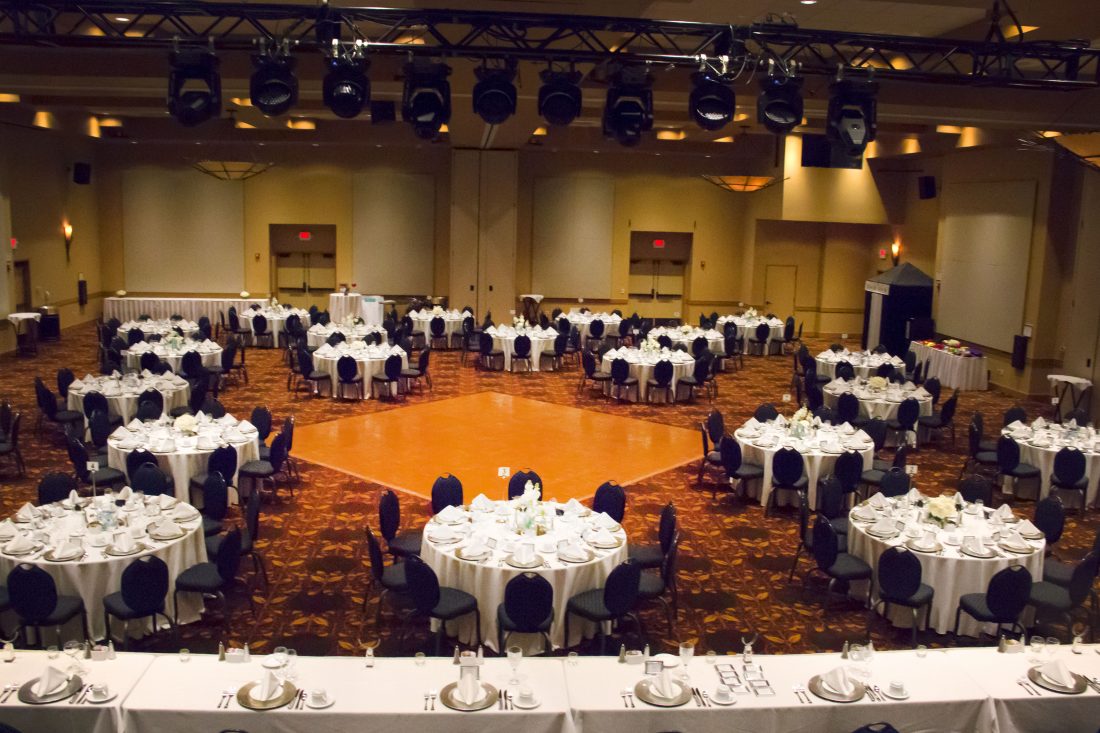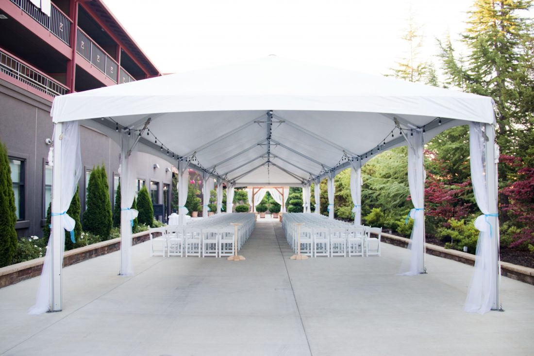 The Garden Terrace is the first space we will tell you about. It is an outdoor patio adjacent to the hotel. This space is lined with pine and cypress trees and is available from March to October. The use of a white tent is available, which gives this a private and secluded feel; it would make a wonderful cocktail party location, farm table dinner space, or an outdoor wedding ceremony option. The space includes a rustic wood with copper accented arch, white folding chairs and many combinations of tables to create the feel you are looking for. Ideal for up to 300 guests, this space can also be used as a combination ceremony and cocktail space for up to 120 guests.