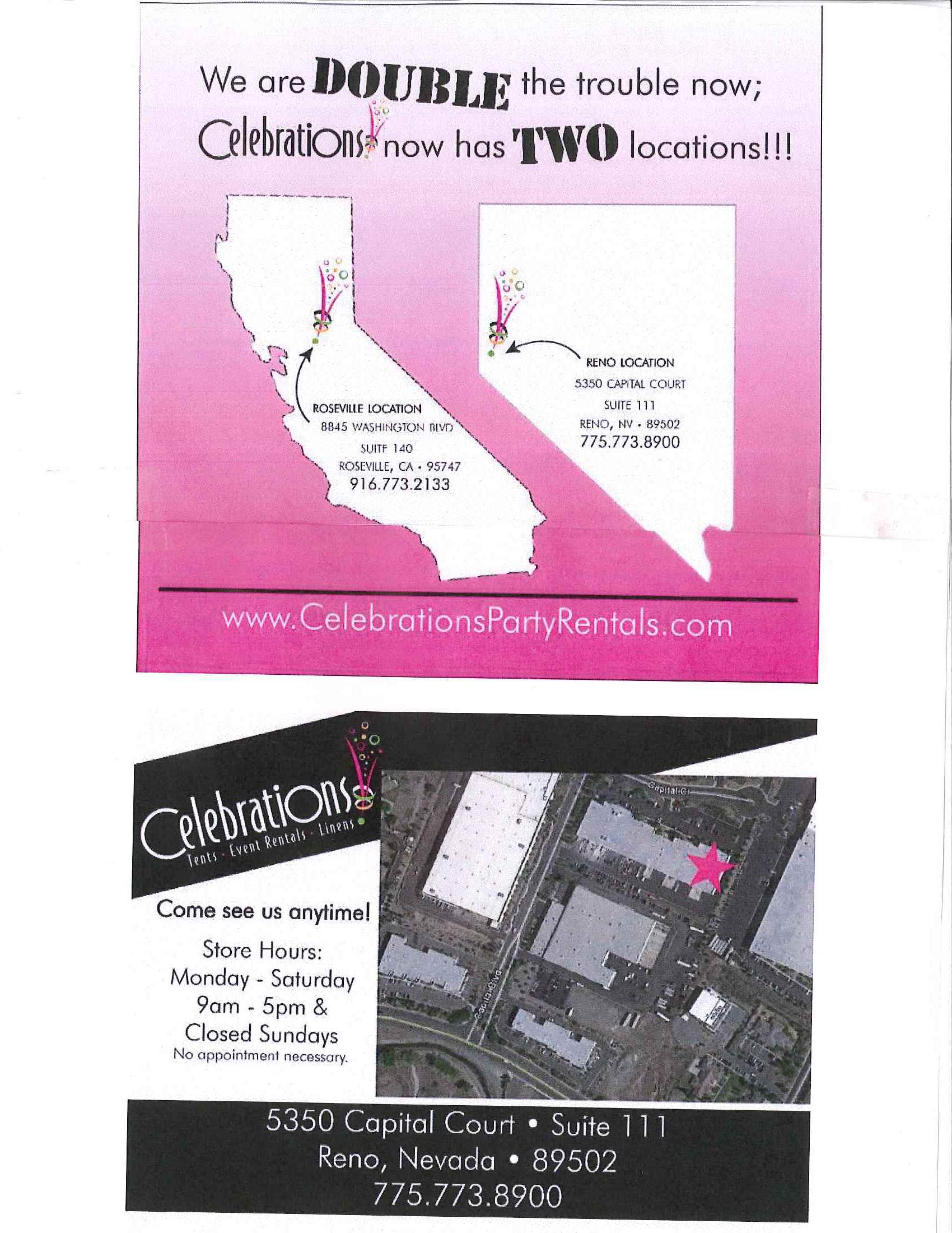 We are always happy for our Vixen Vendors when they are successful. Celebrations Party Rentals has opened up a second location – in Reno! Now those Nevada folks (or Lake Tahoe) can benefit from what we down here in the Sacramento Valley enjoy! Good work guys!