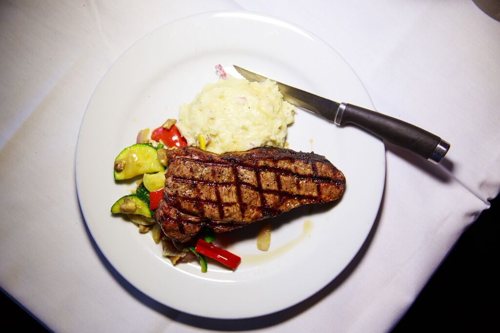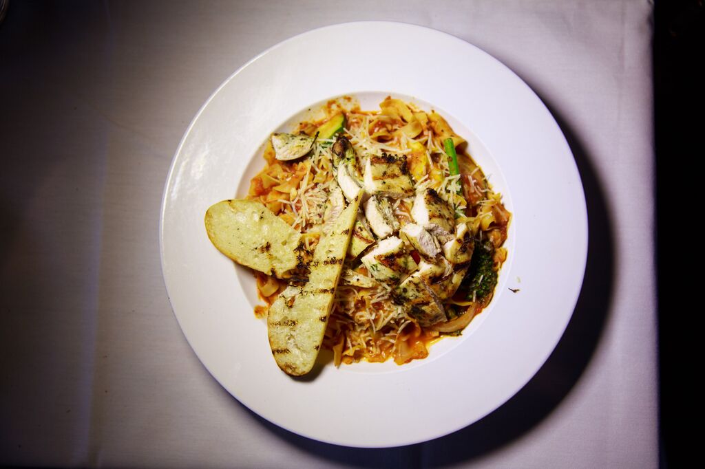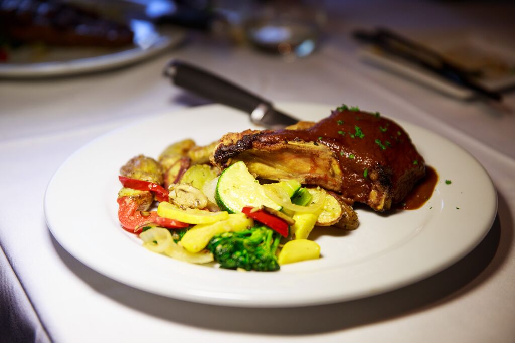 The entree items were even better, and just as beautiful to photograph! For the carnivore, there was the French Grilled Rib Eye Steak (yum), as well as the lovely Elephant Garlic Crusted Wild Salmon, Pasta Primavera – with grilled chicken, and the fantastic Andouille Stuffed Pork Chop. The Fresh Fish of the Day was received with great raves but the writer neglected to document what the fish was… but it looks delicious!