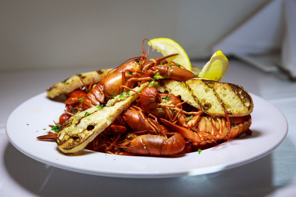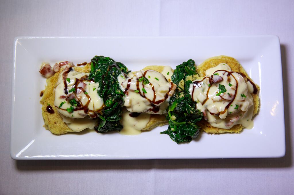 Each one of us ordered our own appetizer and entree (yes, we passed around the dishes and took bites!) The artistry of the oil and balsamic on the plate was fantastic! Enrique, our fun, informative – and very patient waiter took excellent care of us (the wine flowed). We enjoyed a gorgeous jumbo shrimp cocktail, crab cakes (Chef Brian’s special recipe), pan seared scallops served on whole wheat pancakes with sauteed spinach, and the Captain’s Plate with so many shellfish items was a hoot to dig into. Photographer Mischa Purcell really enjoyed this dish