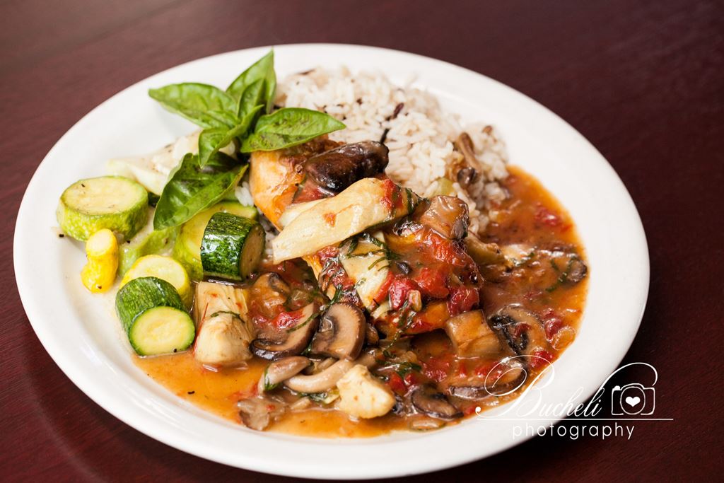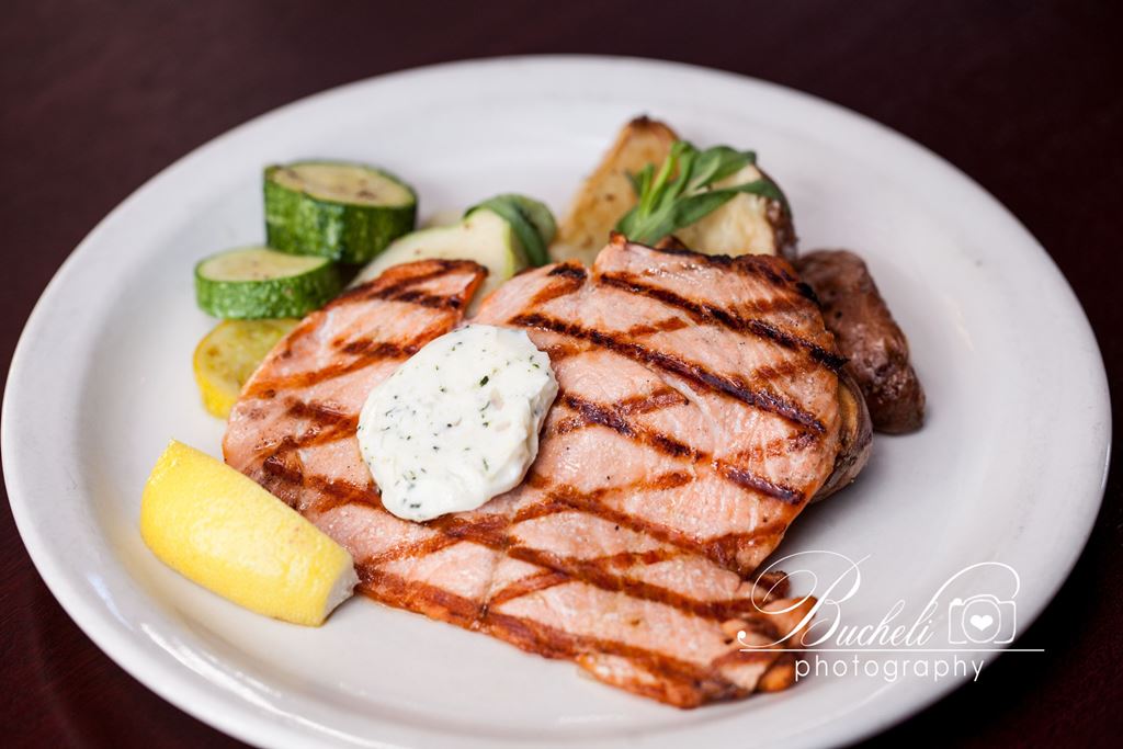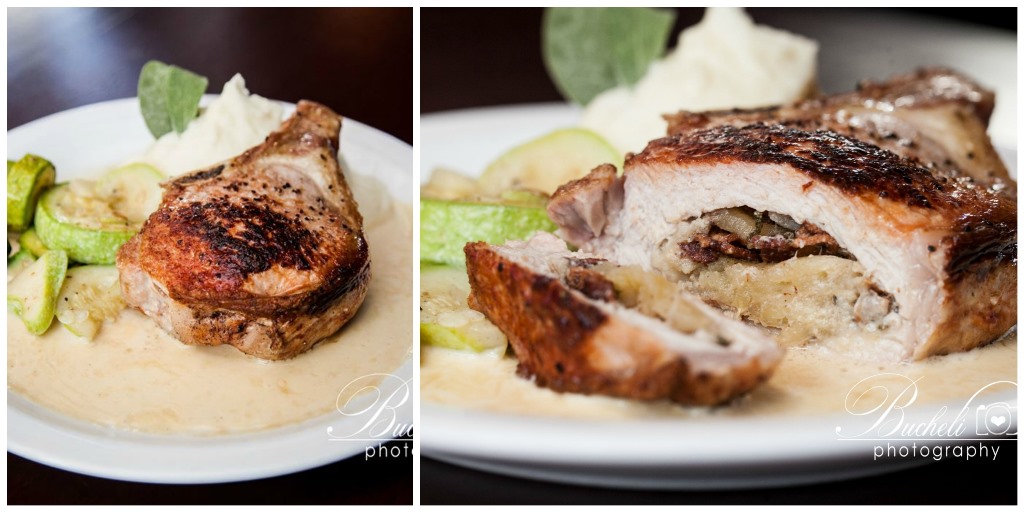 The entree selections are fantastic and we passed around all three offerings so we could taste a little of each. The Organic Farm Raised Salmon, grilled with tarragon lemon compound butter was nicely done. One of the house favorites is the Niman Ranch stuffed Pork Chop (so so good). Stuffed with Granny Smith Apples, Applewood Bacon, Sage and Sparkling Cider Cream Sauce. And the third entree is the popular “Mary’s” Free Ranch Chicken Breast sauteed with artichoke hearts, tomato concasse, fresh basil and Marsala wine.