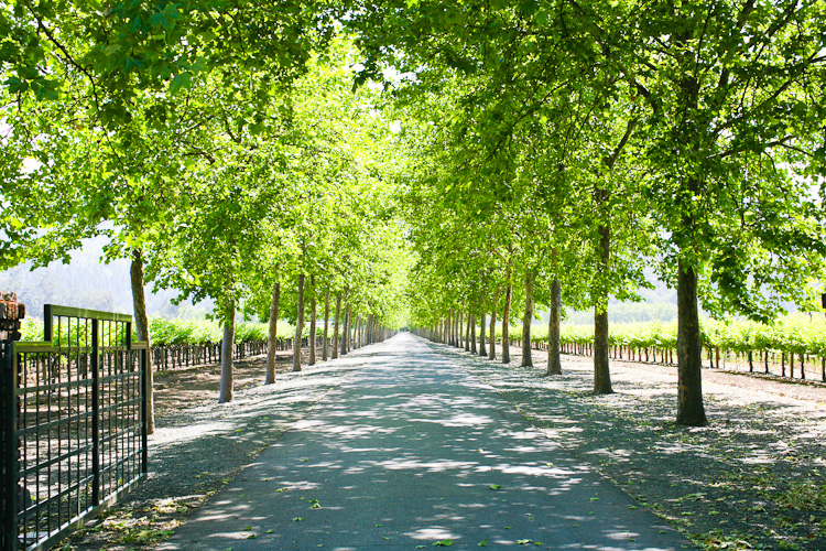 Traveling north up Highway 29 through the middle of Napa Valley, you’ll come to the hamlet of Rutherford and very nearby is a gem of a venue called Beaulieu Garden. It is a private estate, so you’ll not see touristy signs pointing the direction, which is the way this property should remain, quiet and private. The entrance down the long road toward the Mayacamas Mountains, flanked by tall stately trees and lush vineyards on either side sets the tone of what lies ahead… a shaded, serene and beautiful space for a wedding, anniversary or birthday party, or corporate dinner. After parking, or better yet, arriving in style by limo coach, you’ll walk along a lovely creek bed, through manicured formal French designed rose gardens, and trimmed hedges, to arrive to the centralized wedding ceremonial space. This sunken area is very Old World inspired with a unique pond with lily pads, and cherubic fountains. The terraced staircase is perfect for the bridal party to stand on and great for the guests to better see the ceremony. Once the ceremony is over, guests are invited to walk along graveled pathways, past the original private homestead of the property owners (great architectural design), to several locations for the post-wedding social hour. Again, more fountains with bubbling water features anchor the manicured hedged borders.
