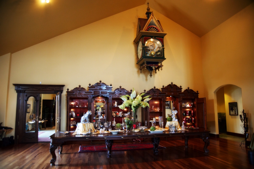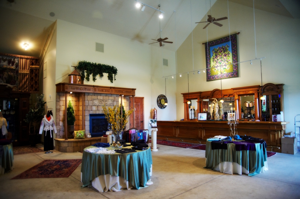 The large stone building has the feel of being aged. Grand cherry wood doors lead into a majestic tasting room and the first thing that will capture your eye is the 26-foot carved mahogany bar. The rich dark hard wood floors and the vaulted ceiling, makes this a luxurious interior space to host a special event. The tasting room showcases a collection of authentic Victorian antiques and art, from Currean Marble Statues, to a 1918 Charles Stieff concert grand piano. Adjacent to the tasting room is the decorative “barrel room.” Not a dark, dank room at all! The exquisite fireplace anchors the room, and provides a feeling of warmth and intimacy and a unique stained glass Gothic window provides just the right amount of light filtering through. Aside from the beauty of the room this is where guests kick off their shoes and boogie. The dance floor and the secondary bar are great accents to the barrel room. Both rooms to the interior of Berghold are very different but hold great interest and beauty..
