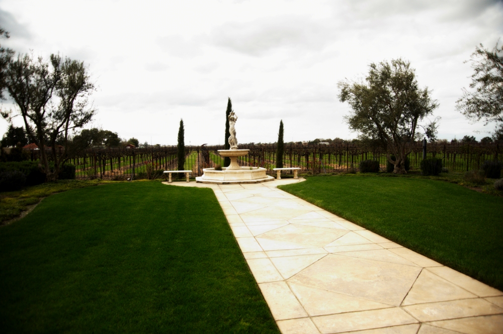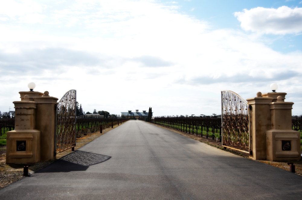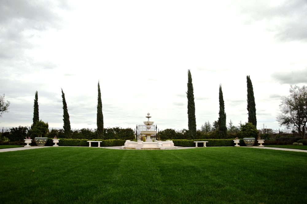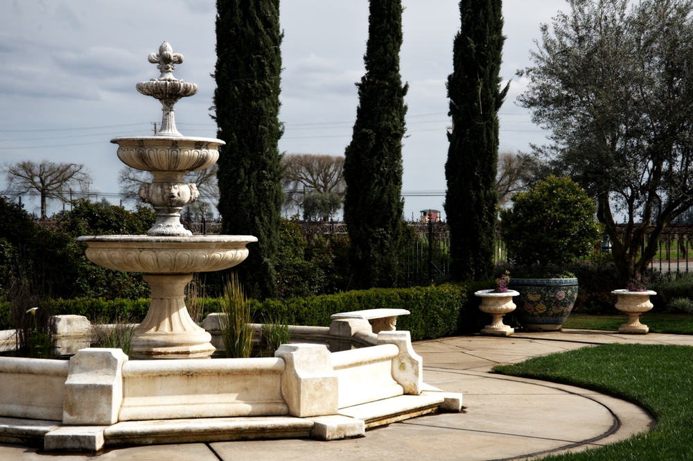 For those of you looking for a taste of Napa closer to Sacramento, then Lodi, California is a great possibility. For those of you looking for a Napa feel with a price point less than the famed region, then definitely consider the Lodi wine region and especially Berghold Estates. As you make your way along the rose lined driveway with flowering shrubs and olive trees this will begin the journey at Berghold Estates. Through majestic iron gates awaits an interior courtyard with stone walkways, towering Italian Cypress trees, and a perfectly manicured lawn. Italian marble fountains grace the property grounds. This front courtyard is one of Berghold’s two beautiful wedding sites.