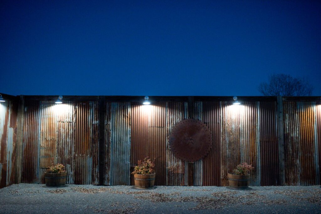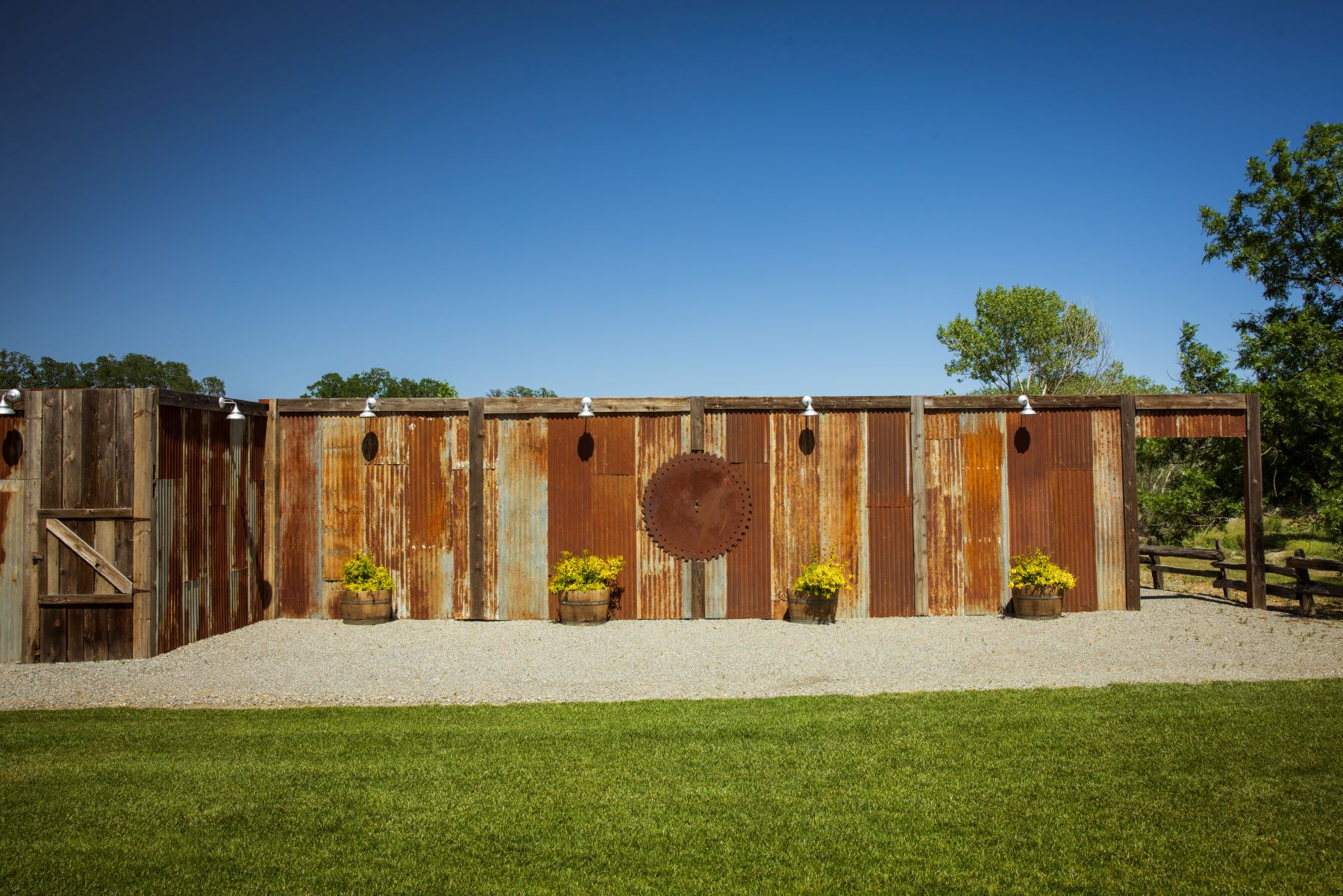 Be sure to check out the blog post on the construction of the grain bin dressing suite and another post on the completion ~ wow! We also appreciate the thoughtfulness in creating a decorative metal wall which vendors can park behind and hide vehicles. There are many electrical outlets around the property and up-light the oak trees too. And to make this a destination wedding, the nearby Rolling Hills Casino has sleeping rooms and restaurants for your guests’ weekend enjoyment.