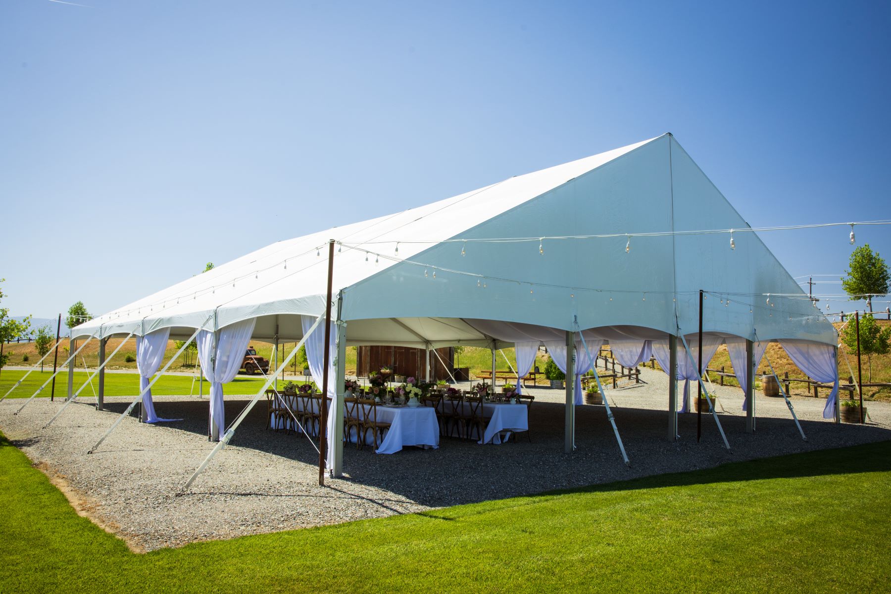 With the open setting, expansive views, split rail fencing, and the country charm, you’ll love The Crossing on Thomes Creek. There is flexibility in exactly where to hold your wedding and festivities. The rental includes Friday for set up and rehearsal, Saturday for the event, and Sunday to remove your personal items. In addition, a corporate dinners or other celebrations have plenty of options and room to spread out and enjoy.