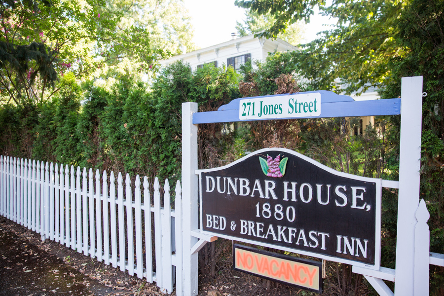 Dunbar House is perfectly situated in Murphys… just steps from Main Street and all the fun of the town. There are six unique rooms that have been thoughtfully decorated and each has its own charming personality. The house is surrounded by beautiful, old fashioned porches set with comfortable chairs (some rock!) for lounging and relaxing. Guests can take in the lovely landscaping of lush lawns, potted urns of seasonal flowers, and bushes of blooming hydrangea, azalea, wisteria, Japanese maple and peonies to name just a few. The feel of the property is old world, relaxing, charming and definitely takes one back to a simpler time.