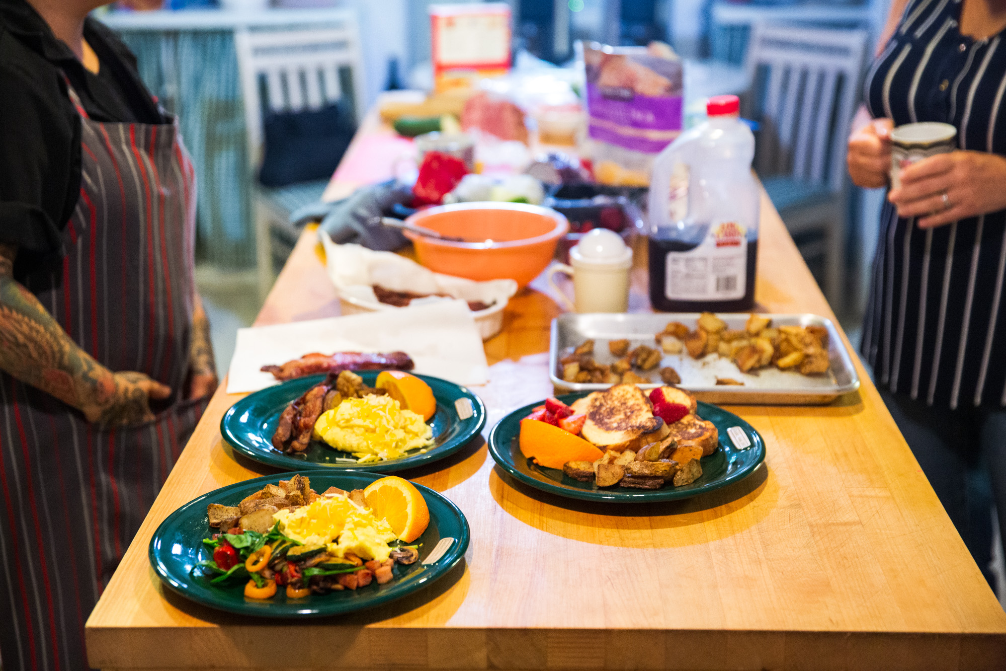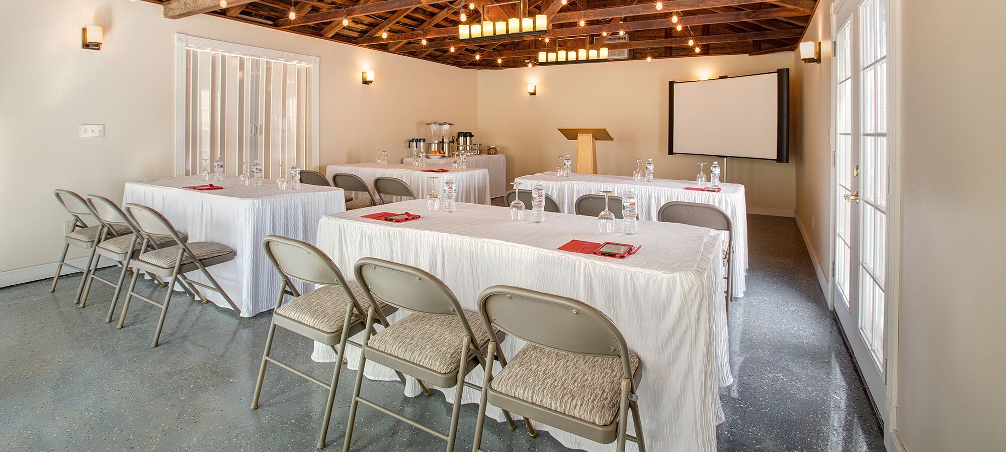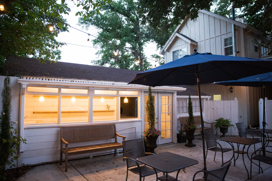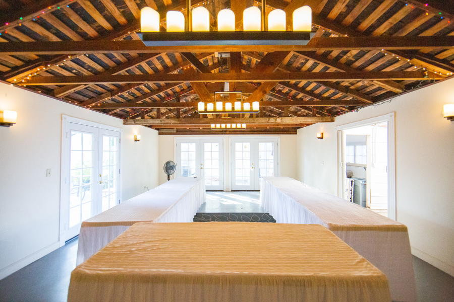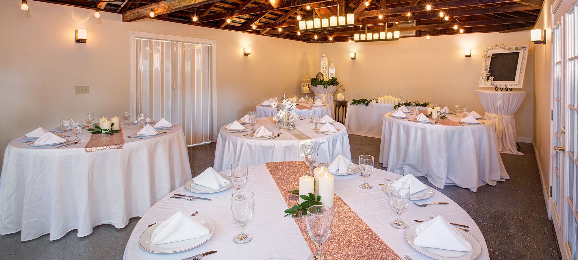 Several areas on the Dunbar House property are perfect to set up special events. You can pick your spot based on the time of day or have a progressive event that uses all of the fantastic options. Weddings are ideal for Dunbar House as romance is a definite vibe. Corporate meetings or retreats also work very well. The Italian market lights that run across the open lawns are beautiful at night and the gardens surrounding the house are abundant, so minimal table décor is needed. To the side of the property is the “Green House,” a sweet white structure with a cobblestone patio in front, as well as French doors, white open ceiling beams, and paned windows. While being great for the bar, the interior can be used as a meeting room, or for a fun dance party; even as a rehearsal dinner location or Sunday brunch venue – there are many options and convenience and flexibility is important to the staff at Dunbar House. Adjacent to the Green House is an outdoor sitting area with a fire pit and space designed for a gleaming white tent complete with flooring and lighting (20×50′ tent is available for a separate reasonable fee.) To simplify your planning all of the tables, chairs, china and linen are included in the facility rental and catering can be selected from a small list of preferred caterers. They have structured the packages to be as inclusive and streamlined as possible.