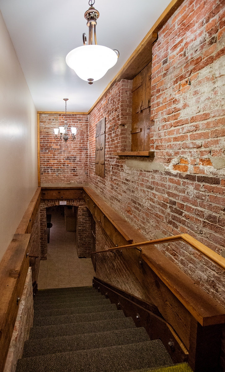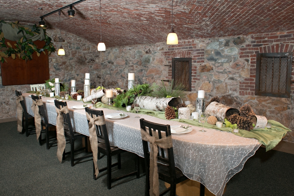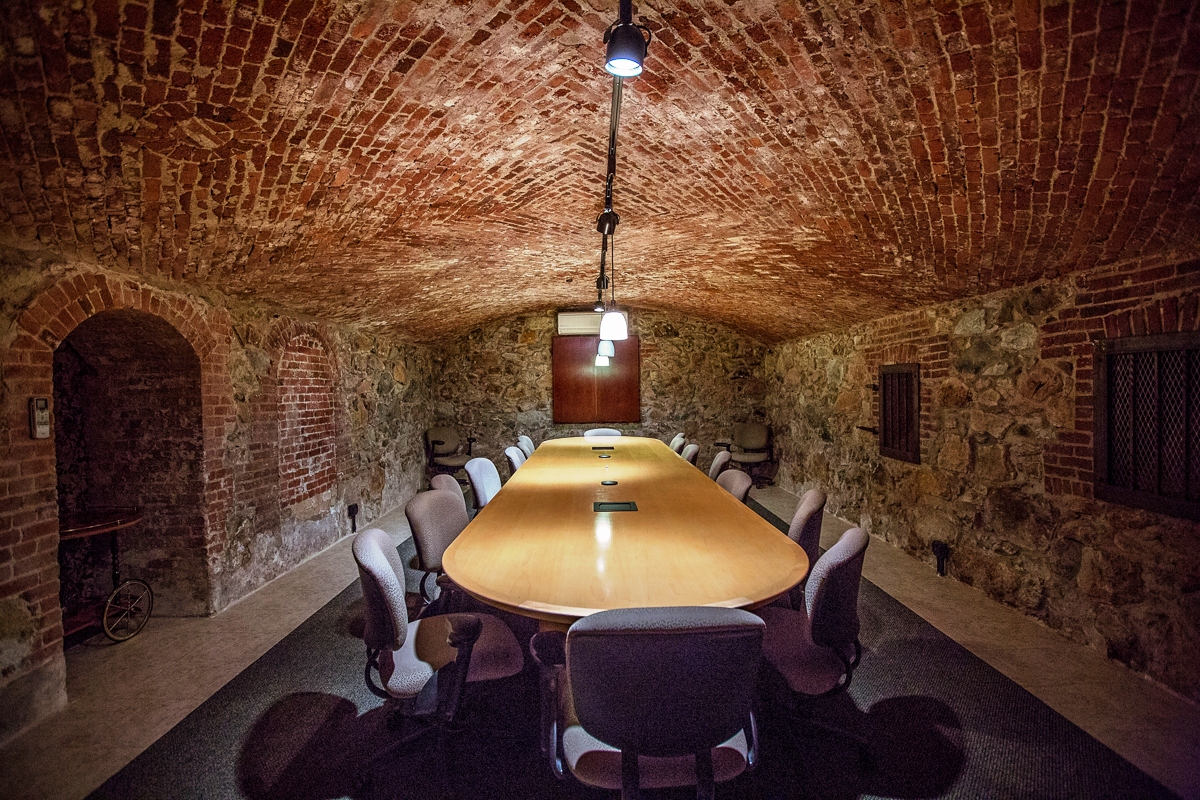 Below the patio are the catering kitchen and meeting spaces. The Brewery, named so because at one time this historic building actually served as a brewery, is a perfect option for small meeting and events and works well as an option if the weather doesn’t cooperate for a garden event. However, the real surprise to us (and the owners when they purchased the building!) was The Cellar. Beneath the building, underground and boarded up until just a few years ago was a real gem, a small basement room with the original rock wall and brick domed ceiling. This is an intimate space, perfect for a meeting, rehearsal dinner, or dinner party for up to 20. It includes a massive oval table and is equipped with AV and internet. It is an incredible room.