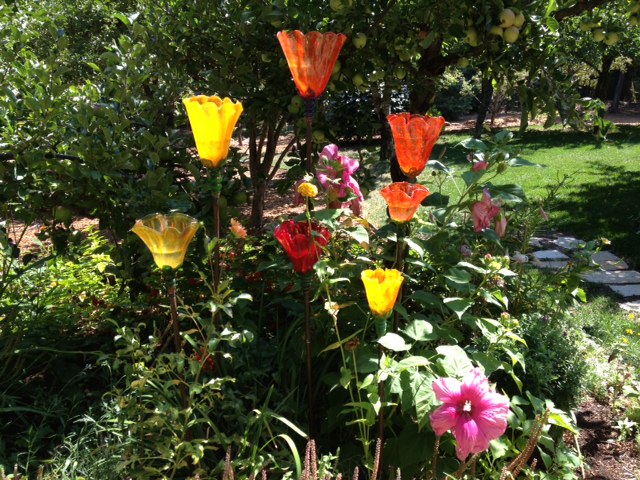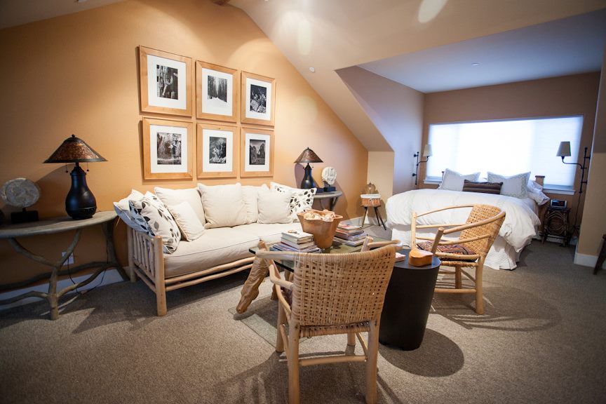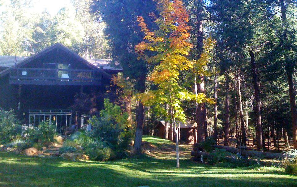 I had the pleasure of being an overnight guest at the Lodge; which is more than a lodge, but truly an experience. The Main House and the Lodge Building, plus the gardens and grounds are on 5 1/2 private acres within the Tahoe National Forest. Serenity envelopes whether strolling the blooming flower gardens, overlooking the grounds and forest from the elevated fabric canopied deck, exploring tomes in the library, sipping wine on a wicker settee within the apple orchard (my personal favorite moment), staring into a roaring fire, or taking a nap in your beautifully decorated guest room. Have I painted enough of a picture? For more activity, Harmony Ridge Lodge has a horseshoe pit, hiking trails, mountain biking, horseback riding, wine tasting, and they partner with local businesses to arrange for kayaking on nearby Scott’s Flat Lake.