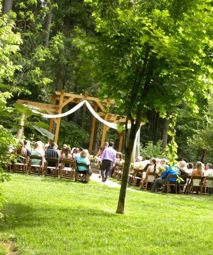 Holding a wedding on the grounds of Harmony Ridge Lodge would be ideal with the prominent pergola for the ceremony. Dining outdoors within view of the tower pines and even a small apple orchard can be enjoyed under strands of lights with hanging paper lanterns here and there. After dinner and wedding cake enjoy dancing on the canopied deck or perhaps snuggle up by the fire pit for a little mountain s’mores indulgence. Your closest family members or friends (up to 25) can stay at the Lodge and enjoy several days, making this a destination wedding – how wonderful! So much to do and enjoy in the area, your guests will be thrilled.