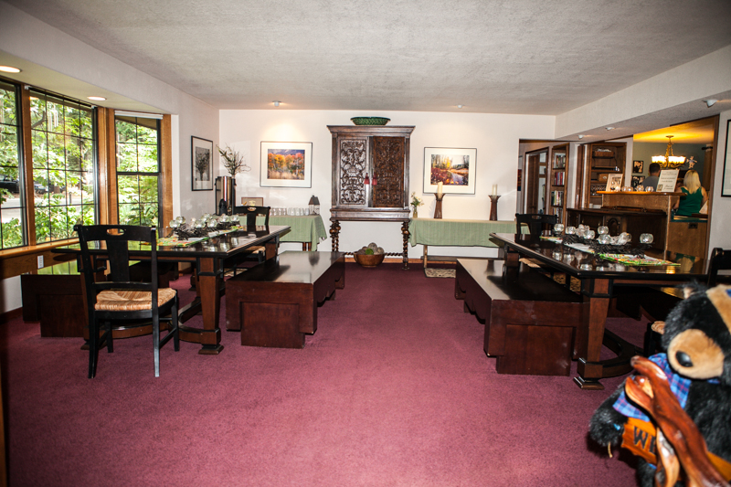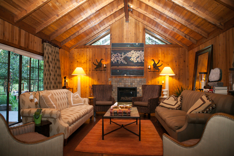 For those looking for a venue to hold a corporate retreat, workshop, sales meeting or the like, Harmony Ridge Lodge has convenient rooms for use – the largest such room can hold up to 40. This conference room has large French doors that look out to the gardens and grounds… it is decorated in a calming manor to be perfect for a yoga or meditation retreat. Or set the room for roundtable discussions or a lecture. For smaller breakout sessions, the use of the Main House library, dining or Great Room are ideal.