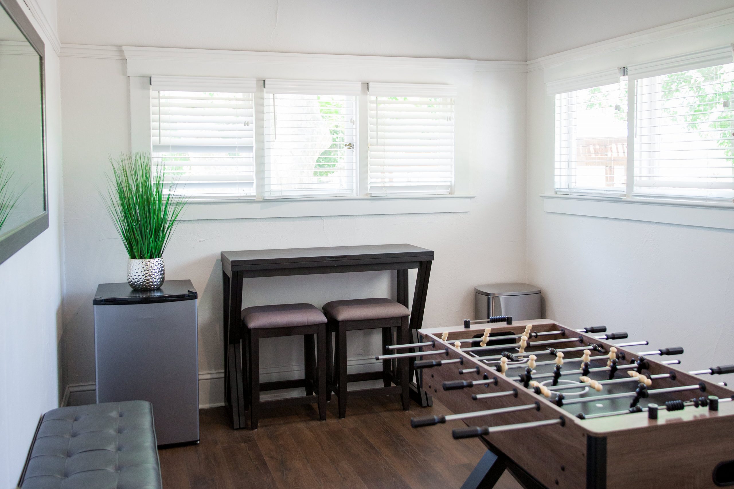 Anchoring the property is the charming 1920’s Craftsman style estate house. This gleaming white homestead has been beautifully remodeled, keeping the historic detail but adding modern conveniences and contemporary touches. The estate house holds a spacious bridal changing area with abundant natural light, make-up chairs, mirrors and comfy seating. In addition, there are more rooms which can be used for a kick-back Groom’s Den or for grandparents resting room. Also, an efficiency kitchen with contemporary dining table is handy for champagne and snacks for the wedding party.