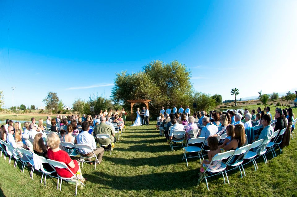 The Ranch is an oasis in the middle of farm crops and orchards. A peaceful stroll around the beautiful 2 acre pond, stocked with bass and catfish, is a must. There is an island and a large fountain in the pond with stately weeping willow trees nearby. Lush natural grasses, reeds and cattails growing along a nearby creek bed add to the earthy ambience. There is a large well-manicured open lawn with The Pond along one side, a natural cottonwood tree backdrop, and the walnut orchard on the other side, just perfect for a wedding ceremony.