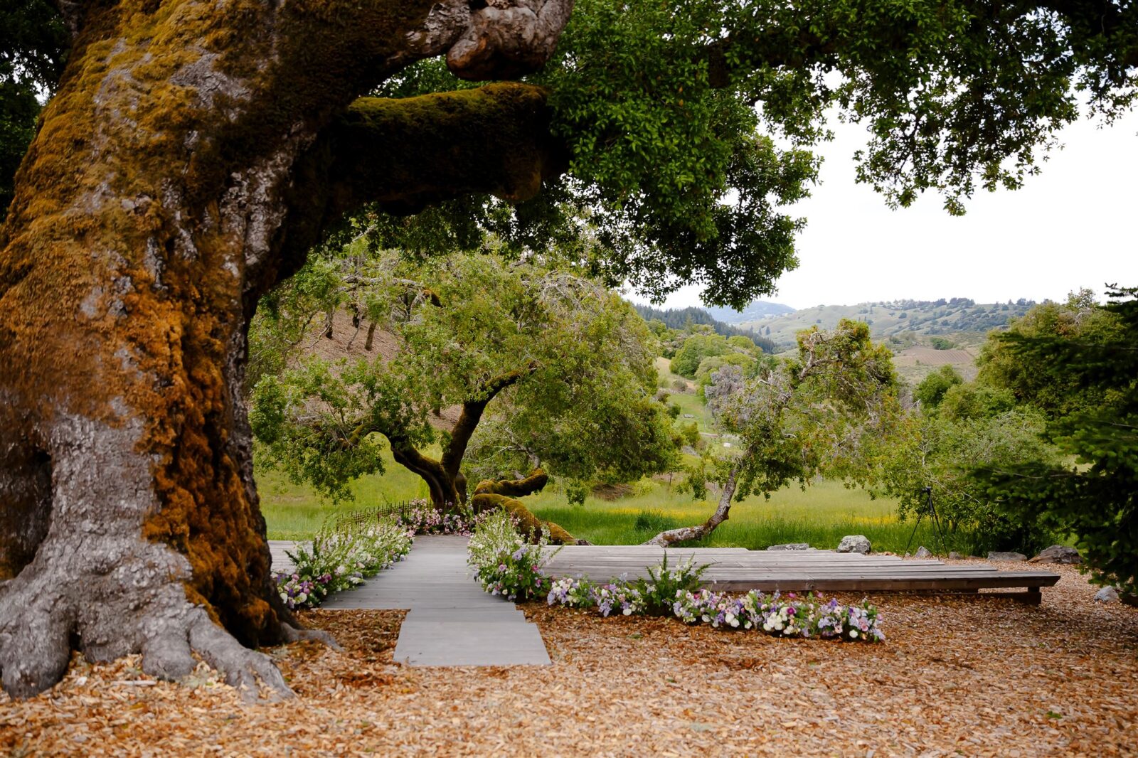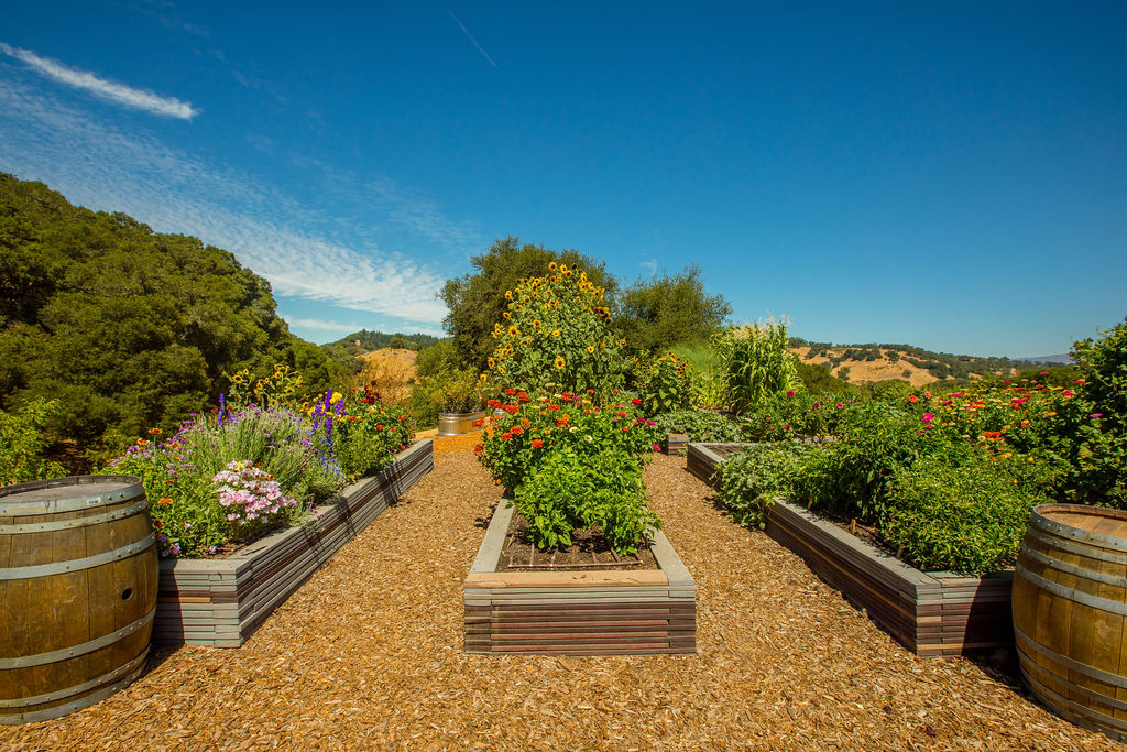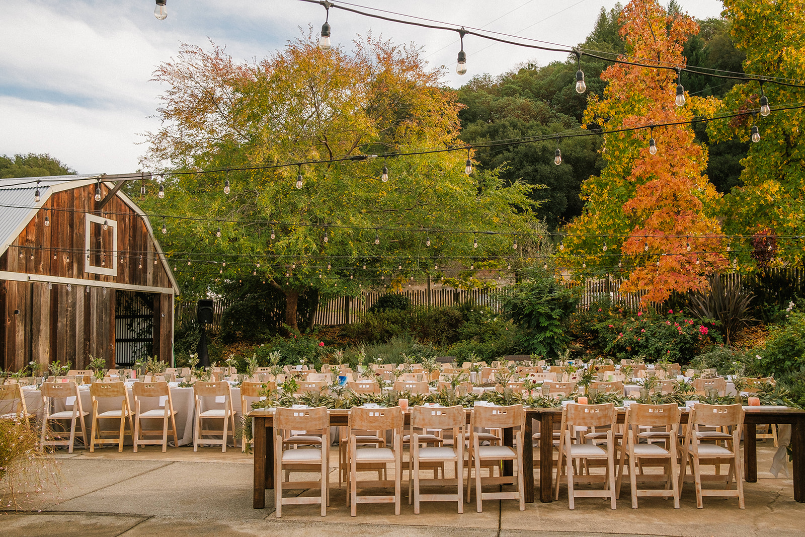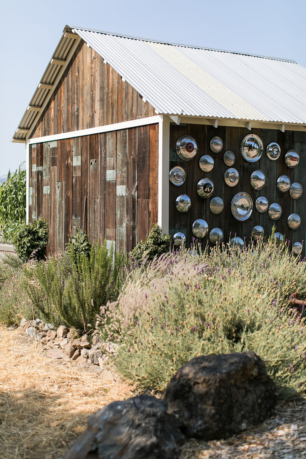 The Oak Tree Terrace is one of those secret spots at Mountain House Estate. A short walk or drive up the hill will take your breath away. Crest the hill and look down to a heritage Valley Oak that is ideal for a private, wooded ceremony. This natural amphitheater features built-in benches that are seamlessly placed into the hillside. A rustic barn in a turquoise patina, and raised-bed garden full of tasty vegetables and wild flowers offer interest and beauty while guests are gathering or enjoying cocktails looking out over the rolling hillside.