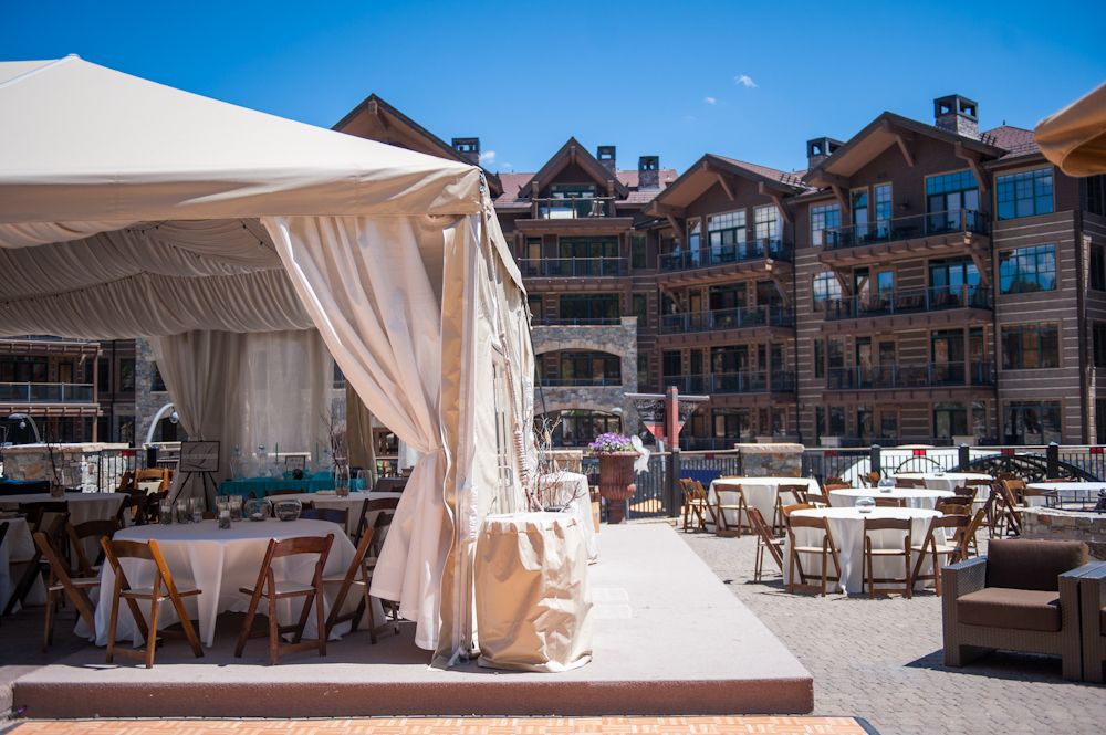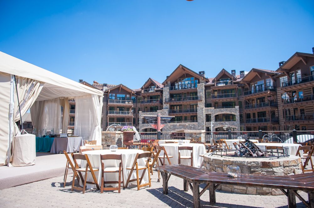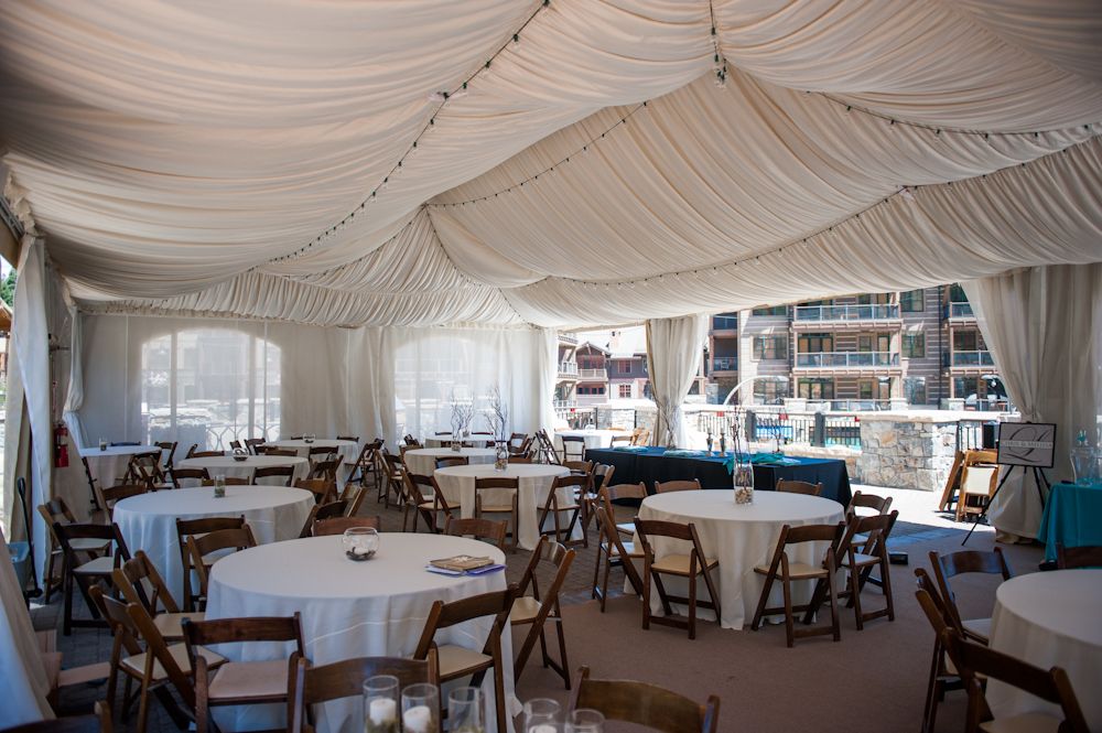 My favorite ceremony and reception location at Northstar is the Overlook Pavilion which overlooks Northstar Village, which in the evening just glows with lights and excitement…now for the celebrations options: Let’s start with the beautiful sloping grass area attached to the Pavilion. This is the perfect ceremony location with the beautiful pine trees and greenery that Tahoe is known for as a backdrop. Just steps away is the Overlook patio, a natural segue for the cocktail hour. The patio can be used throughout the evening as a cocktail area with tall tables, outdoor furniture creates small lounge areas where guests can relax and visit, and the stone firepit is a natural gathering area as the evening cools down…complete with a s’mores’borg. Best of all, the use of the firepit and outdoor furniture is all included in the rental! The Overlook Pavilion Tent is lovely as a dinner space. For those of you looking for a little glam in the natural forest, the billowing white lined tent will be perfect. There are several options for your celebration depending on your group size, perhaps you’ll dine on the grass and have dancing in the tent, really, the choice is yours!