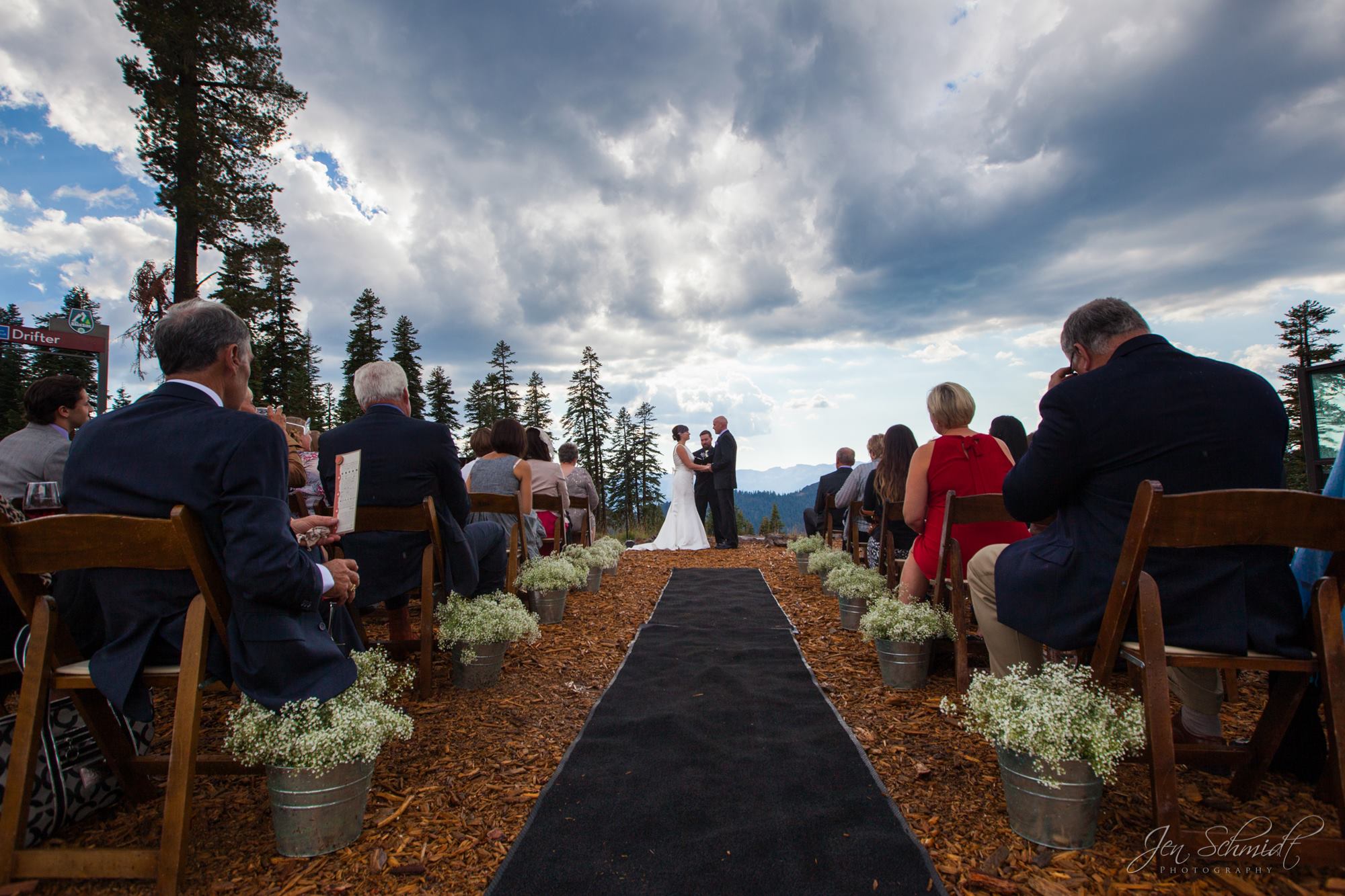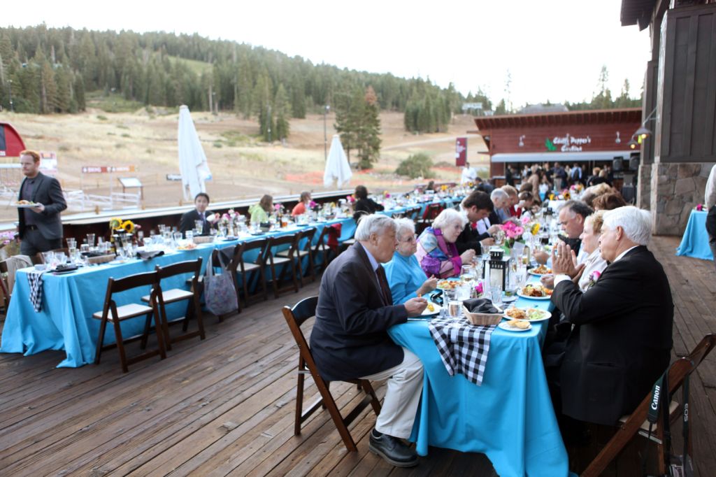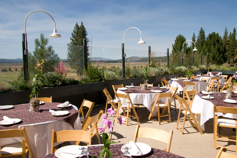 Another wonderful location on property is “mid-mountain” – the Lodge at Big Springs. Thrill your guests with a gondola ride to the lodge (or buses are available for those less daring). In the true spirit of a Tahoe ski lodge, you can get married on the slopes in the winter or on the deck during the summer. Lovely scenery and views anytime of year, you’ll just have to decide if you want moderate weather and gorgeous green hills or cooler weather and views of white!