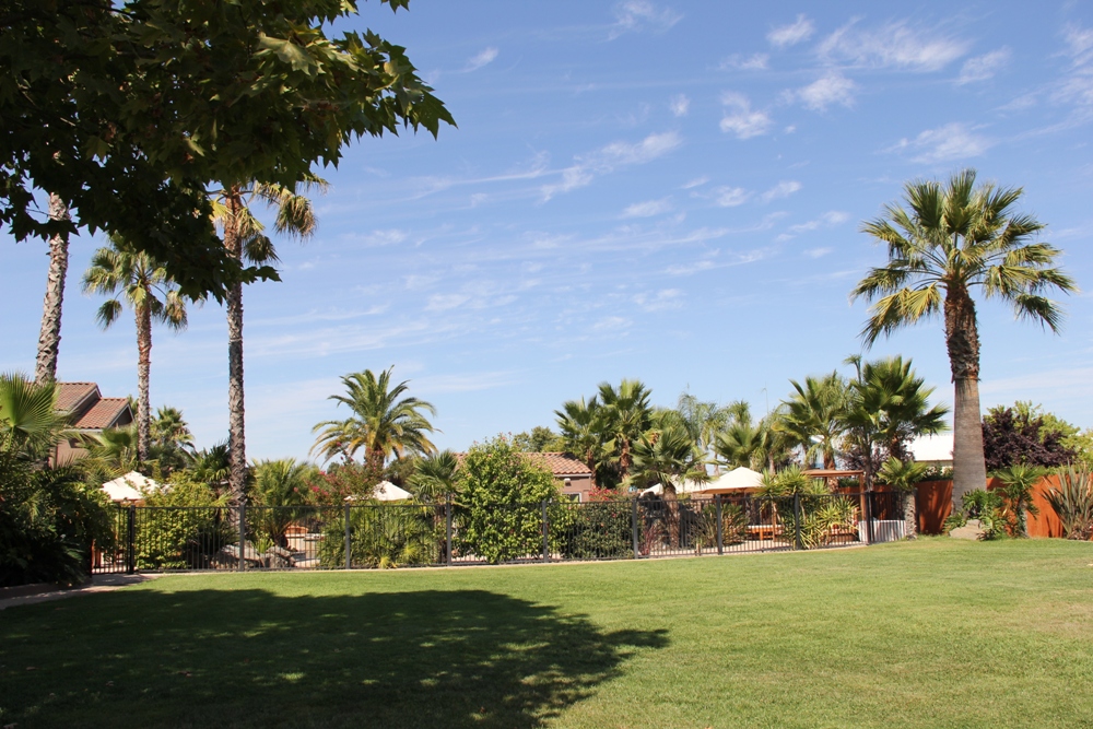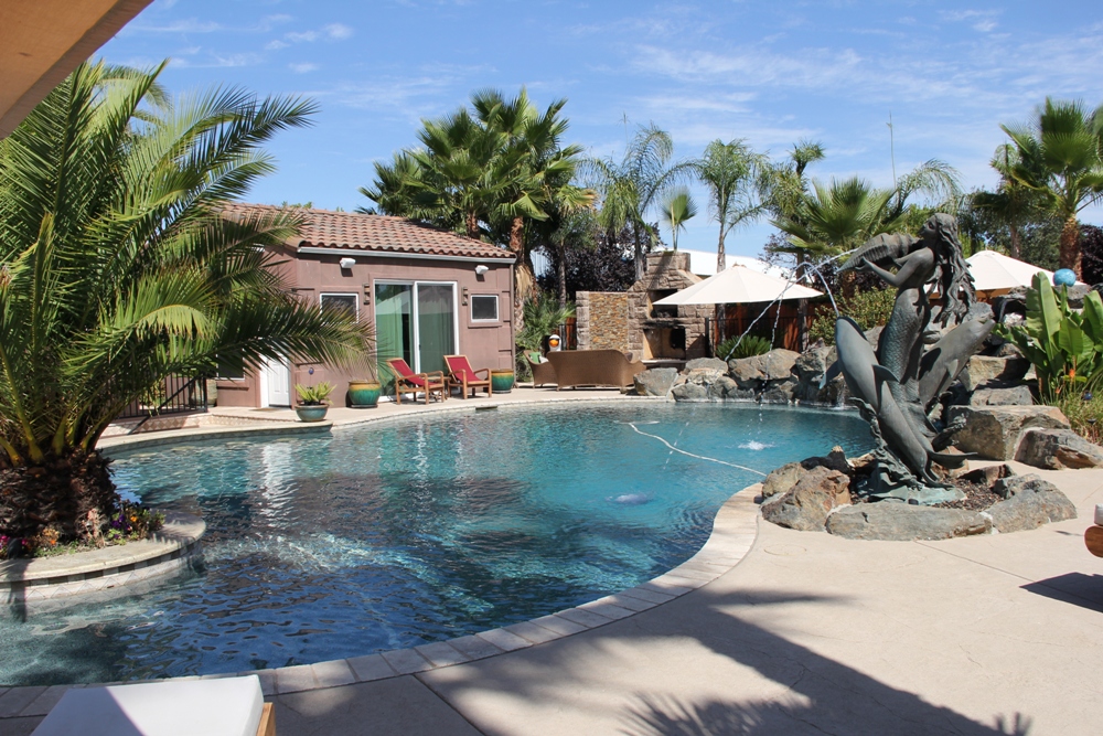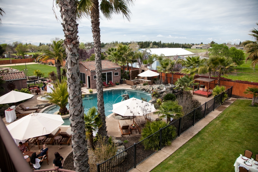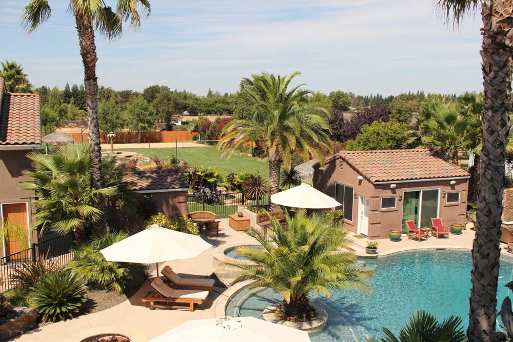 If you want to marry, or hold a rockin’ party in a pretty garden setting, then Palm Garden Paradise is the answer. And, if you want that garden to look like you just stepped onto a Hawaiian island, then you have really found the tropical answer to your dreams! Located just south of Sacramento, in Elk Grove, CA, this oasis comes with ponds filled with koi (and even a water turtle), gorgeous fountains by the blue-blue swimming pool, landscaped large open lawn space… all under the shade or swaying Canary Island Palm trees.