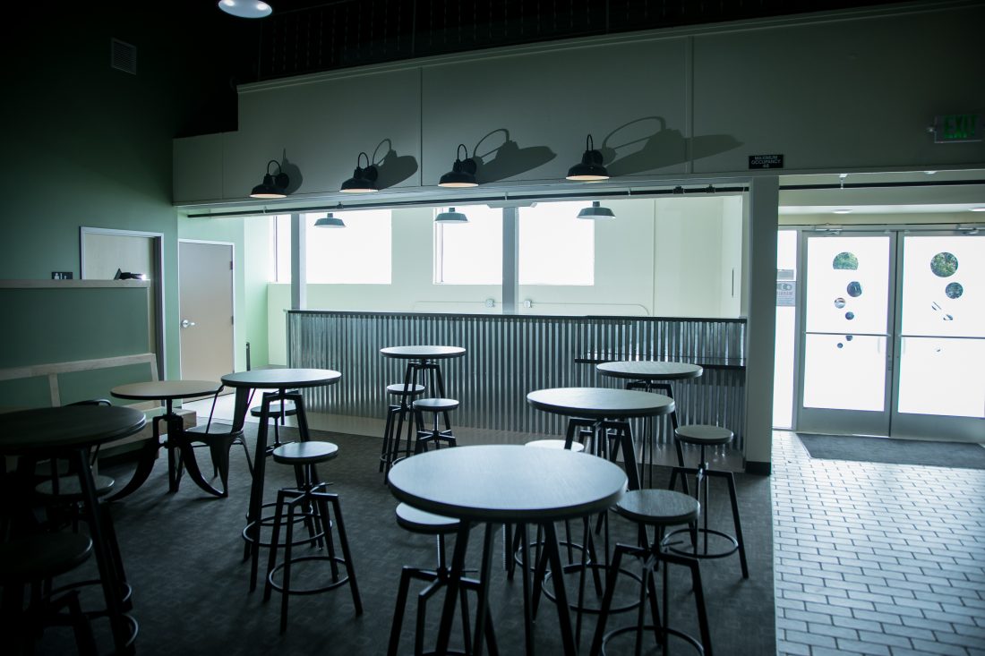 The entryway allows for the perfect greeting space for your event. With an oversized 12ft corrugated sided bar with a butcher block top and the flexibility of full-service bartending, this space immediately welcomes your guests and offers the fun feel every celebration needs. Thematic LP/record cocktail tables, bar stools, and built-in benches add comfort and convenience to this space.