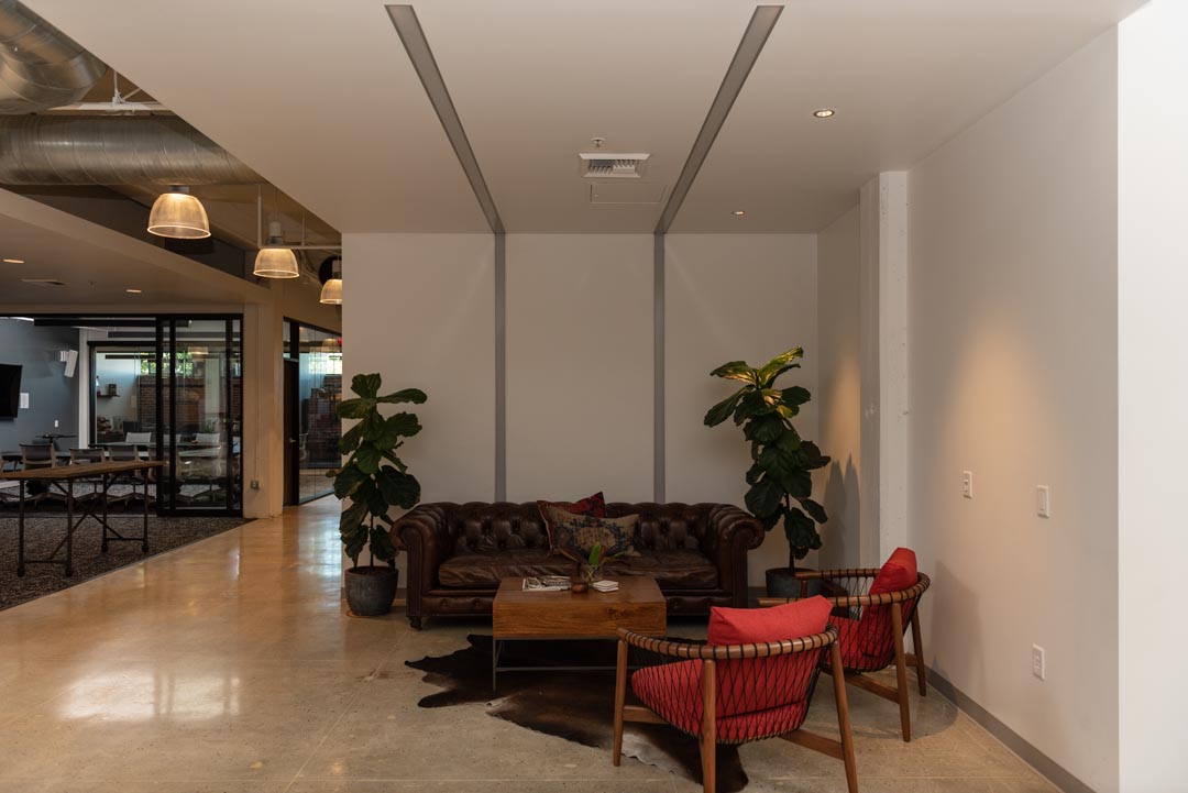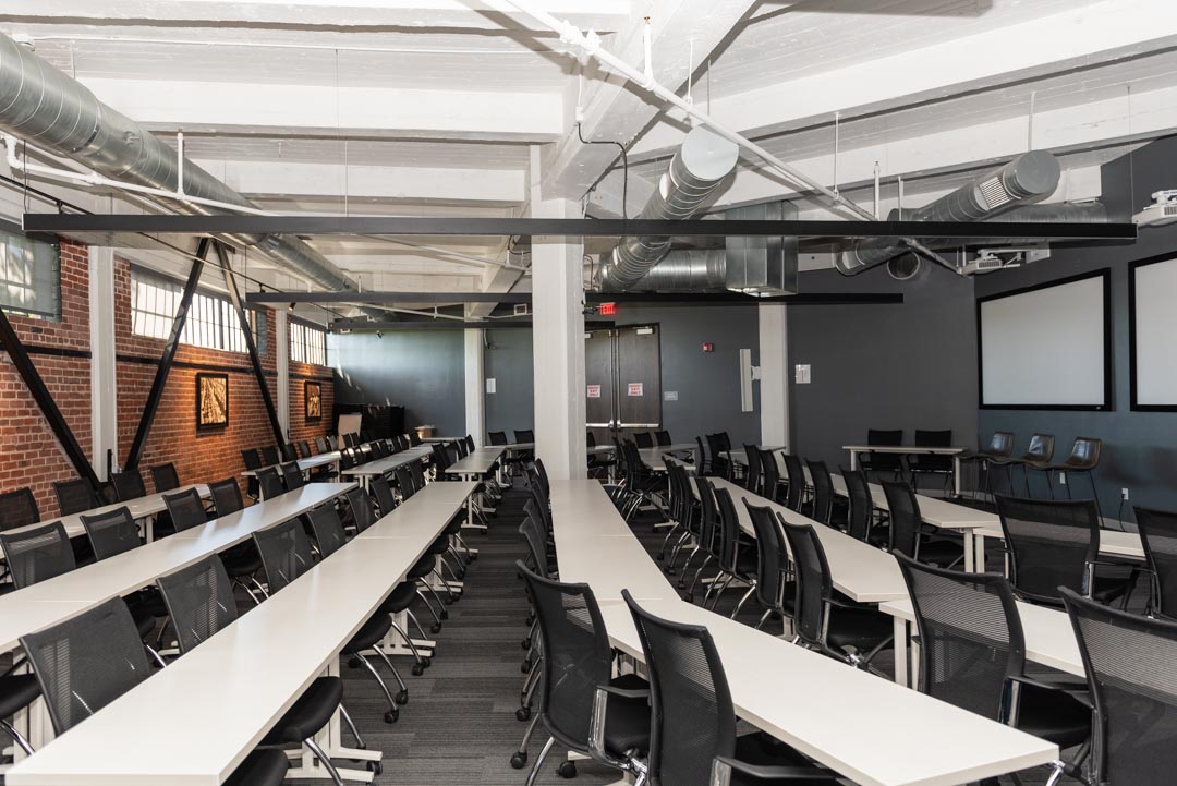 There are two adjacent rooms to the Lounge space that can be utilized. These work well for a breakout space, buffet, photo booth, or another fun activity ~ the options seem endless! Next is a small glass sided conference room for serious deal making, discussions, or business needs. It can also be an expanded space to the main lounge area.