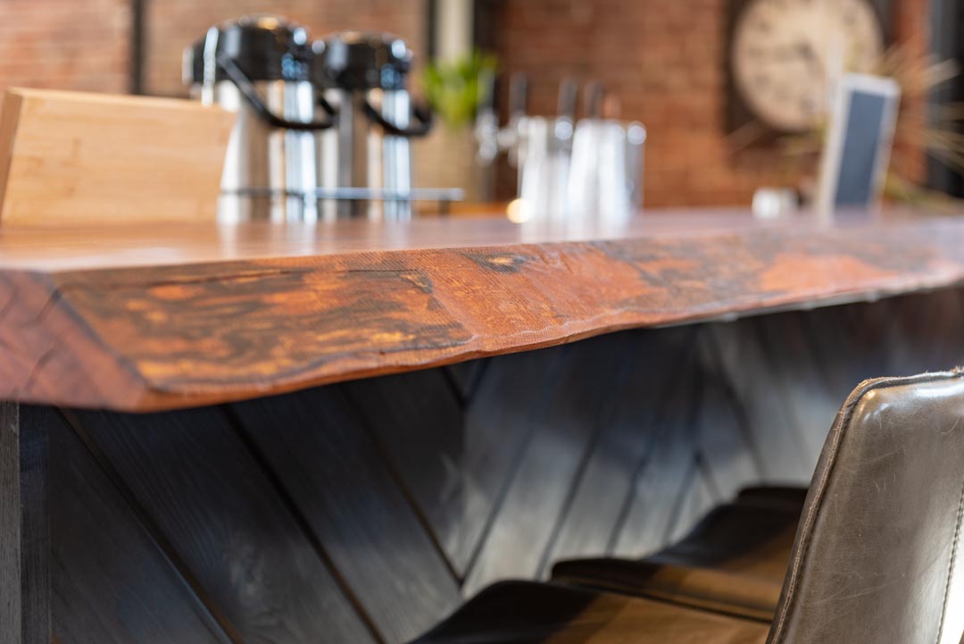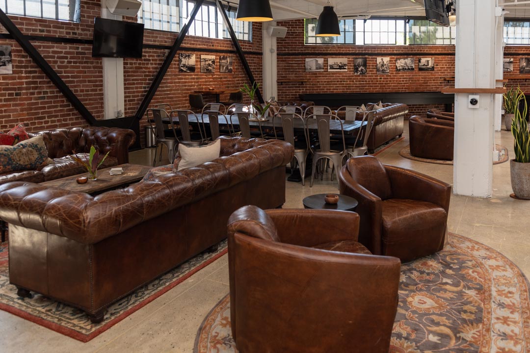The Sequoia has several spaces within their walls. Upon entering is the Lounge,featuring the historic brick walls and polished original concrete floors, with vintage photos of Sacramento. The Lounge has an open industrial loft feeling; juxtaposed are both historical and modern qualities. Sophisticated yet subdued colors and striking textures blend harmoniously with luxurious furnishings to create a rich and inviting environment. A built-in bar made of a live-edge redwood slab compliments the décor perfectly.