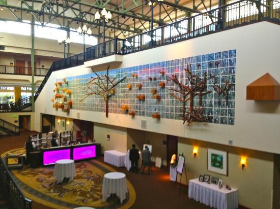 The Sheraton Grand Hotel is a beautiful 500 plus room hotel located in downtown Sacramento.  The hotel is part of the renovated historic Public Market building that was originally designed by famed architect Julia Morgan. Designer of Hearst Castle, she was responsible for the design of many beautiful buildings and homes that were built at the turn of the century in Sacramento and the Bay Area.  This grand hotel is conveniently located next to the Sacramento Convention Center and just blocks away from the State Capitol. This historical property originally housed local shops for over 50 years. Fruits, vegetables and meat merchants along with restaurants and tailors and other assorted vendors enjoyed much success with the large growth of the area in the early 1900’s.  The conversion of the Public Market in the 1990’s gave Sacramento one of its finest hotels.  The handsome brick exterior gives way to a beautiful, modern interior, showcasing unique art pieces, yet keeping the vintage steel structural girders of the original building.