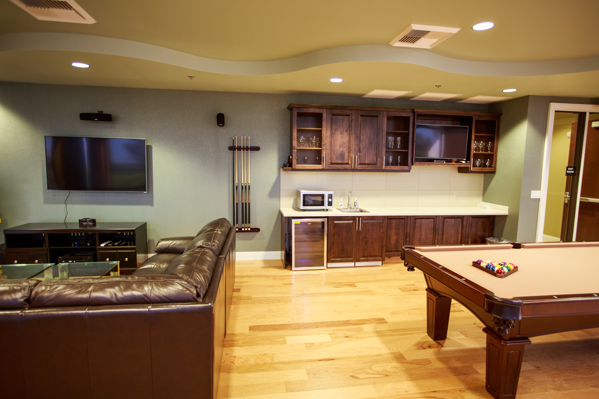 Next we move on to wonderfully equipped conference rooms. They can be used in so many ways- children’s playroom, staging area, groomsmen holding room, conferences and board meetings to name a few. Each building contains: Lobby, Main Event Hall (Ballroom), Courtyard, Small Conference Room, Large Conference Room, Board Room, Theater and Game Room. Yes… I said Game Room and Theater! They even have a pool table with highboy cocktail tables along side for game watching. This venue is well suited for a vast array of event types and was clearly designed for versatility and customization. So many times caterers are not allowed from the outside. This is not a problem here! The Falls is open to all your vendors. They even have kitchens to make it convenient for them. And the icing on the cake- they have wonderful knowledgeable staff on site. To describe all of the details of all the different spaces would just be too much for one review. I encourage you to look at the many wonderful images and better yet book a tour! I don’t think the pictures fully prepare you for all of the lovely features this amazing venue offers.